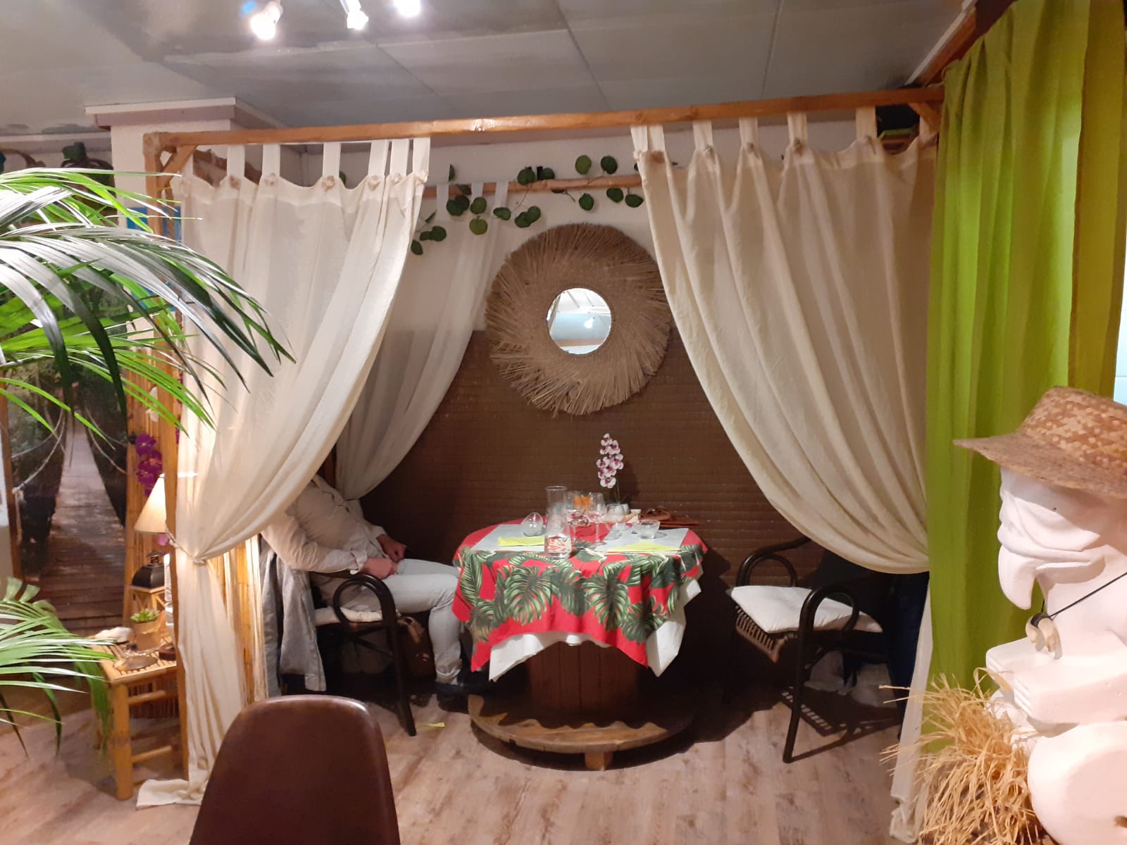 Ambiance intimiste. Cadre enchanteur vous faisant voyager en Polynésie. Accueil très simple et convivial. Hospitalité authentique. En prime, la cuisine est délicieuse. Le duo de tartare est une explosion de saveur en bouche. A faire absolument.