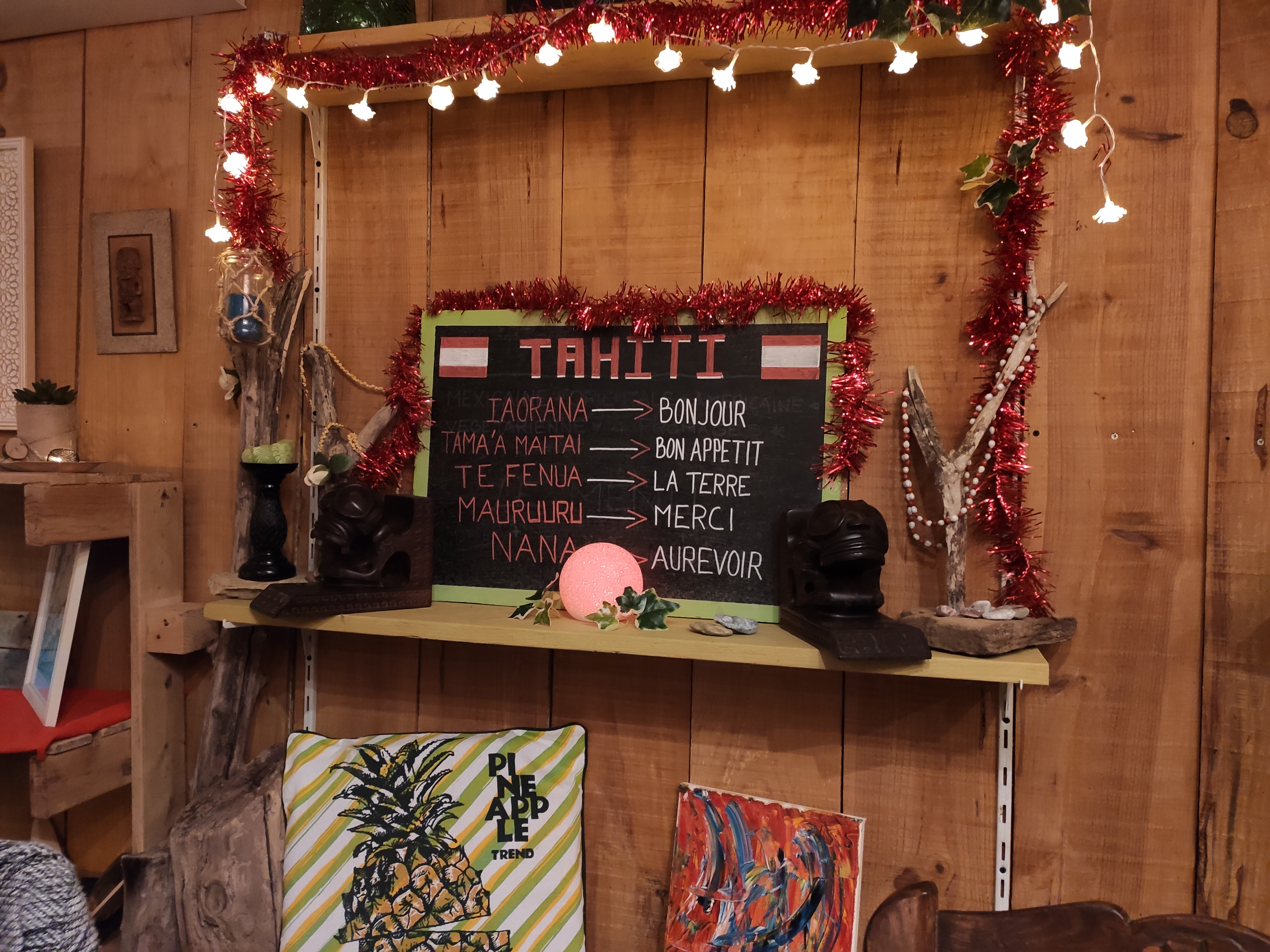 Un petit restaurant très agréable avec une décoration, une ambiance qui nous fait voyager... et cuisine traditionnelle Tahitienne excellente. Conseil vivement