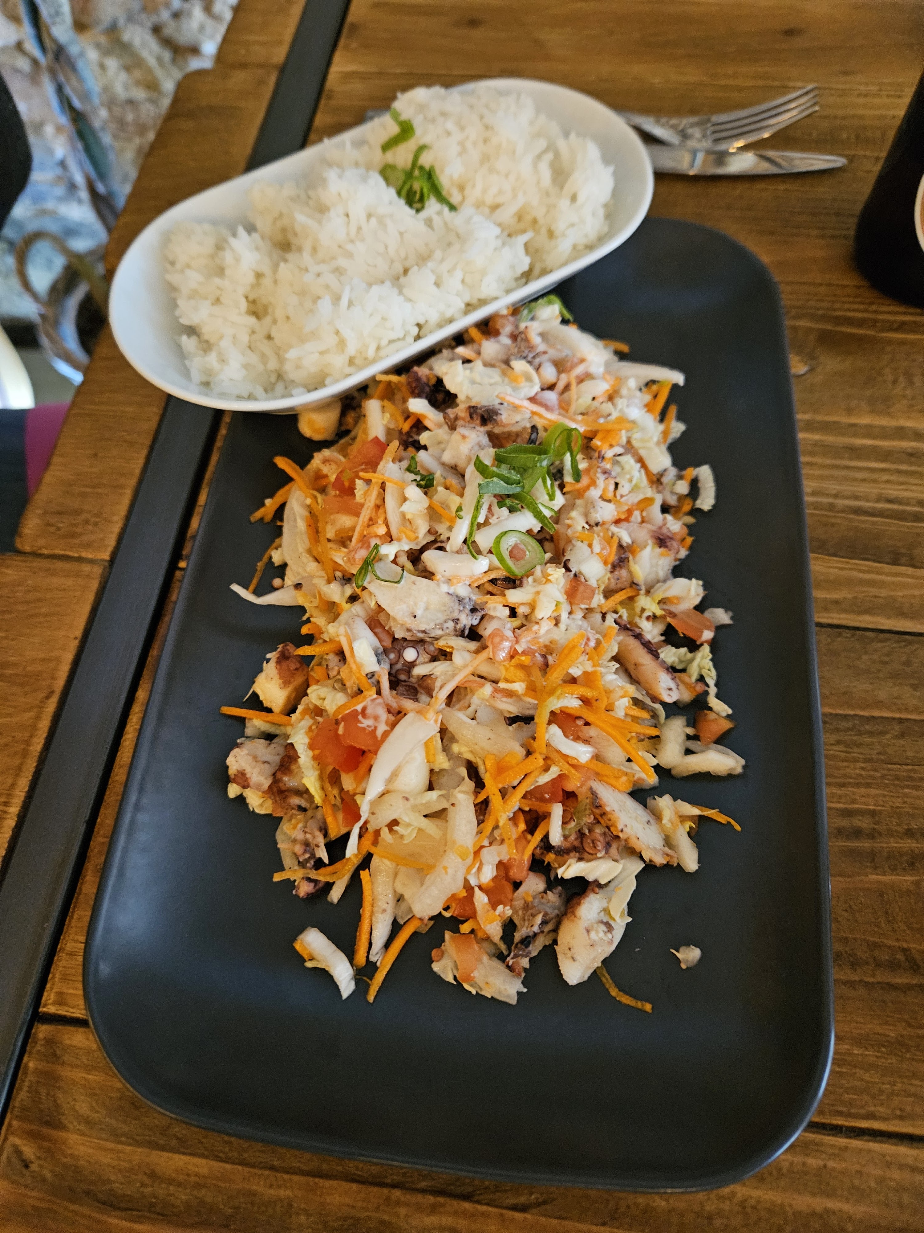 Je me suis régalé de la salade tahitienne et son riz chaud ça m'a rappelé de beaux souvenir de tahiti, je recommande à 100 pour cent maruruu ❤️ Maud