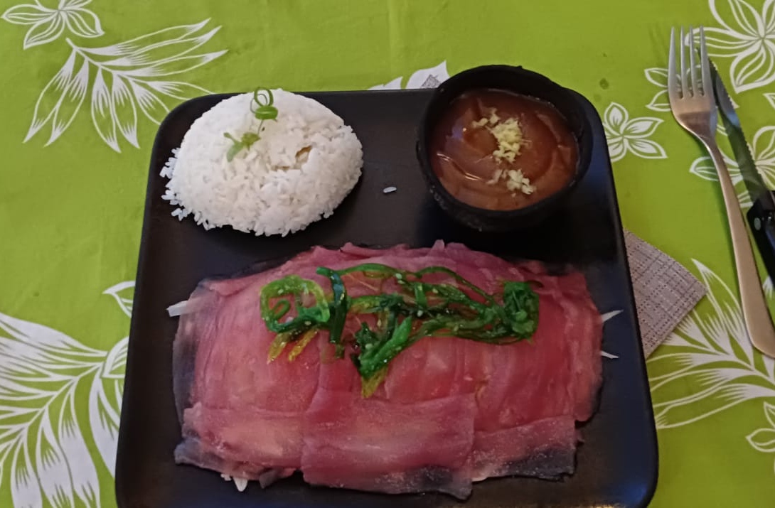 Accueil avec le sourire dans un endroit au décor qui rappelle les îles. Et, la serveuse qui prend son temps pour expliquer en detail la carte. Ça a été une très belle decouverte. Avec ce plat de poisson qui visuellement ressemble à de la viande, mais qui en bouche garde toute la saveur du poisson. Un véritable régal. À découvrir.